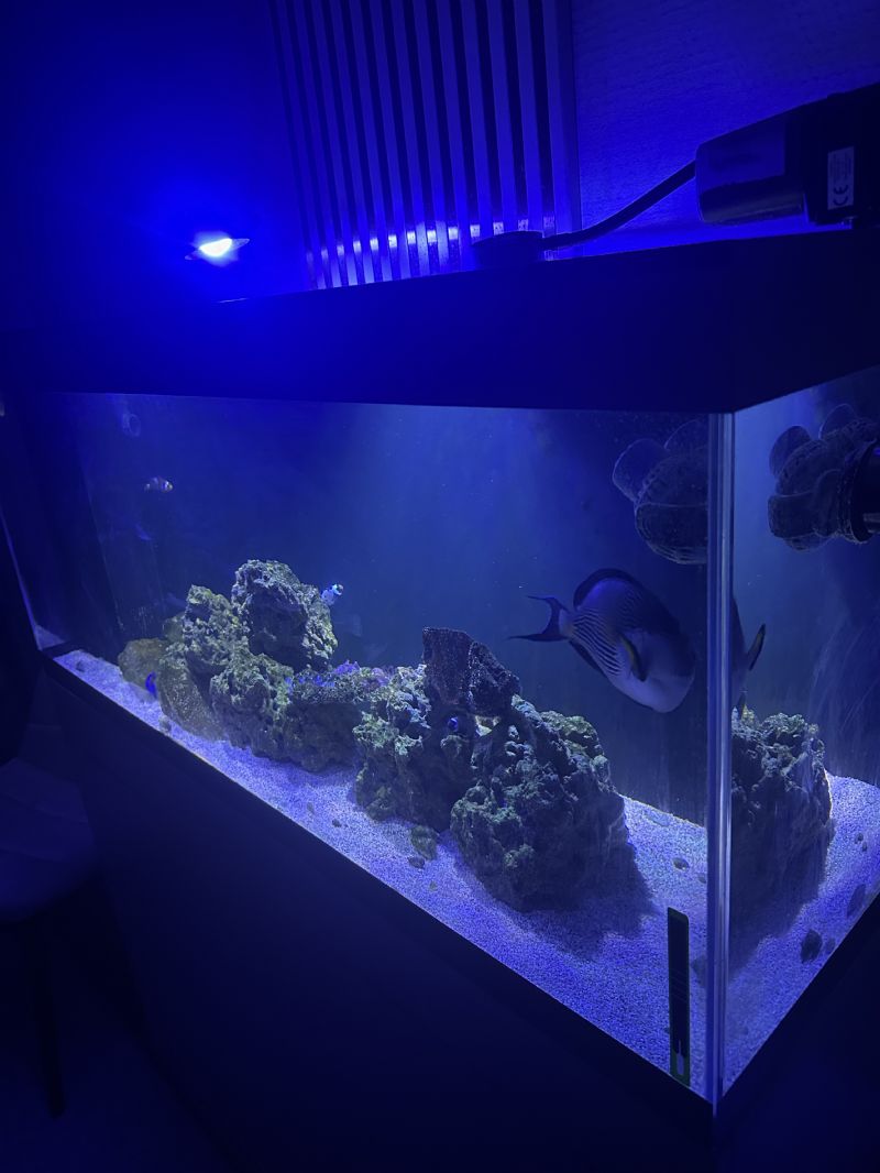 İçerisinde canlı olarak 1 adet Sohal Tang, 2 Blue Tang ve 5 adet Palyaço var.