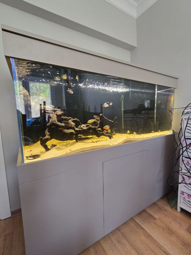 150*60*60 ultra clear, içsumplı(sağ arka köşede), mobilyalı, taç kapaklı akvaryum, - 23.000TL