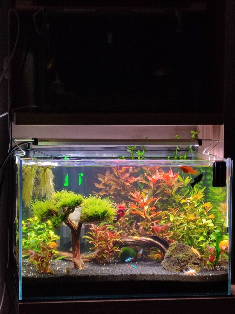 Sayısını tam olarak bilmediğim ''Sarı Ateş Neon Karides'' 200 civarı diye tahmin ediyorum, sürekli üremeye devam ediyolar, tanesi 30 tl den rahat satılıyor bildiğiniz gibi + 1 adet elma salyangozu