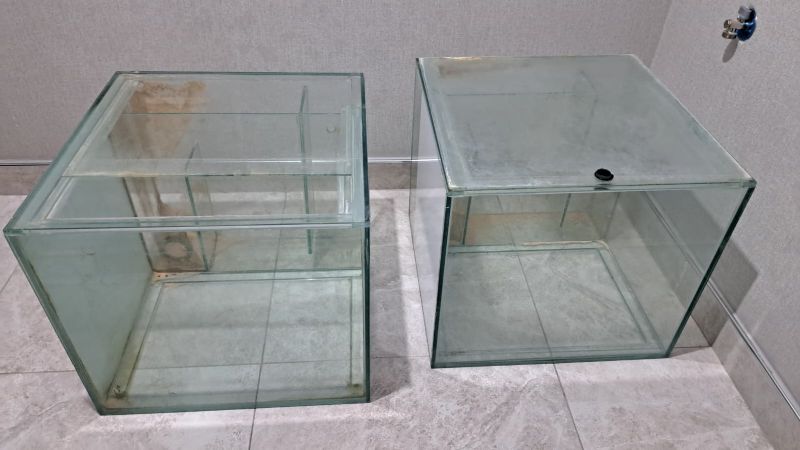 Satılan Malzeme(ler): 50x50x45h ve 50x40x40h akvaryumlar