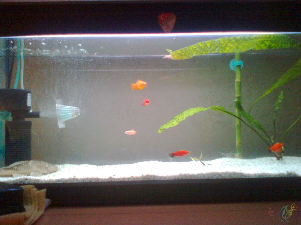Atakan Bey akvaryumumda sadece lepistes yok diğer canlı doğuran çeşitleri de var. Balıklarıma Big Fish ve Seranın kovadan bölme yemini veriyorum ikisi de pul yem suyun renginde hiç bir anormallik yok su tertemiz.