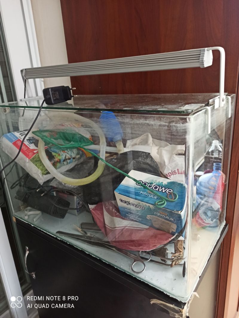 Satılan Malzeme(ler): 60 cm bombeli ithal akvaryum ve aydınlatma, eheim ve tetrstech ısıtıcı, bitki makas ve tutucu, dekorlar (dragon kaya, ağaç dekorlar, Roma sütunları, renkli tasarım mercan), 300 litre eheim, rs kafamotorları aquaflover orta boy askı filtre, JBL 2 ki fan ve ısı ayar probu, çeşitli malzemeler