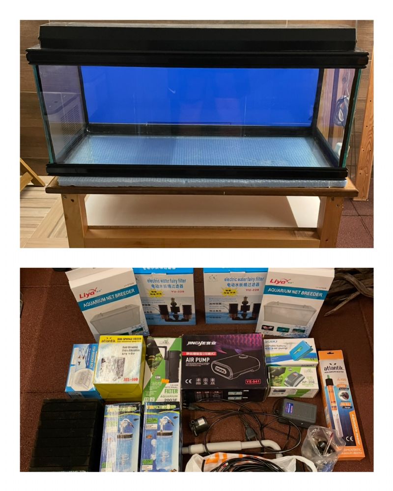 74.5cm x 29.5cm x 32cm ölçülerinde, 2 adet cam bölmesi olan, mavi arka planlı, florasanı sorunsuz çalışan Aksan Akvaryum yapımı akvaryum. Ayrıca el yapımı sehpası da fiyata dahildir. Yanında ayrıca 2 adet sıfır YU-228 motorlu pipo filtre, 4 adet hava motoru (Jingye 4 çıkışlı, Sobo, Shark, Venusaqua), 1 adet süngerli el yapımı filtre, 2 adet sıfır tül yavruluk, 2 adet sıfır filtreli kuluçka, 1 adet yavru yetiştirme kutusu, 1 adet 100W Atlantik Isıtıcı ve 1 torba hava hortumu, hava taşı ve vantuz verilecektir.