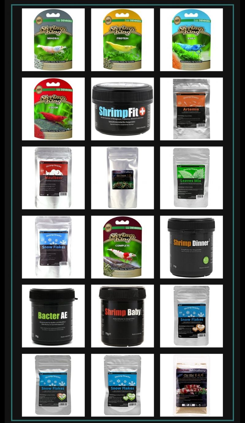 Diğer Ek Bilgiler: Karides yeminde dünyada en çok tercih edilen GlasGarten ,Shirakura , Dennerle Shrimp King ve Salty Shrimp markalarının en çok tüketilen yem ve katkıları bulunur,