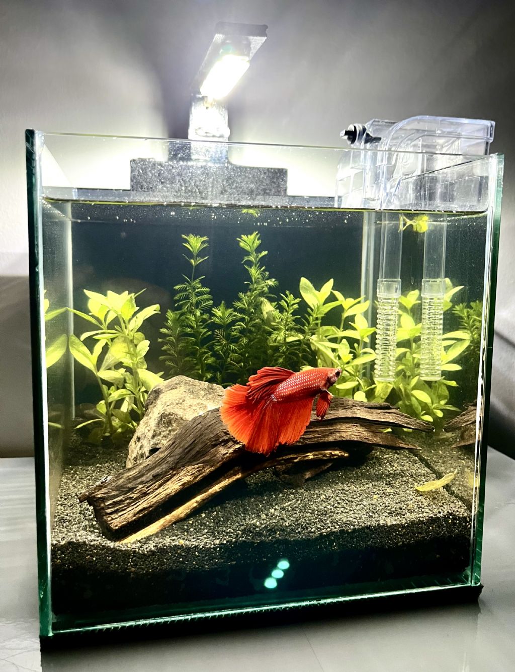 Ölçüler: 20x20 Canlı Türleri: Betta Bitki Türleri: Limnophila sessiliflora, Hygrophila Tankın Yaşı: 1 Ay Filtrasyon: Şelale Filtre [IMG]https://foto.akvaryum.com/fotolar/251778/031020251207041.jpg[/IMG][IMG]https://foto.akvaryum.com/fotolar/251778/031020251207081.jpg[/IMG] 30x30 Betta tankımın yanına yeni bir Betta tankı daha kurdum, tavsiye ve önerilerinizi beklerim..